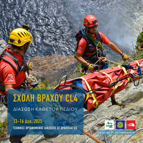 Η Σχολή Βράχου CL4 του Basecamp εξειδικεύεται στη διάσωση κάθετου πεδίου, προσφέροντας πρακτική εκπαίδευση σε τεχνικές οργανωμένης διάσωσης και αυτοδιάσωσης. Το πρόγραμμα υλοποιείται στο Λεωνίδιο το Δεκέμβριο του 2025, με επικεφαλής πιστοποιημένους εκπαιδευτές της HMCS.